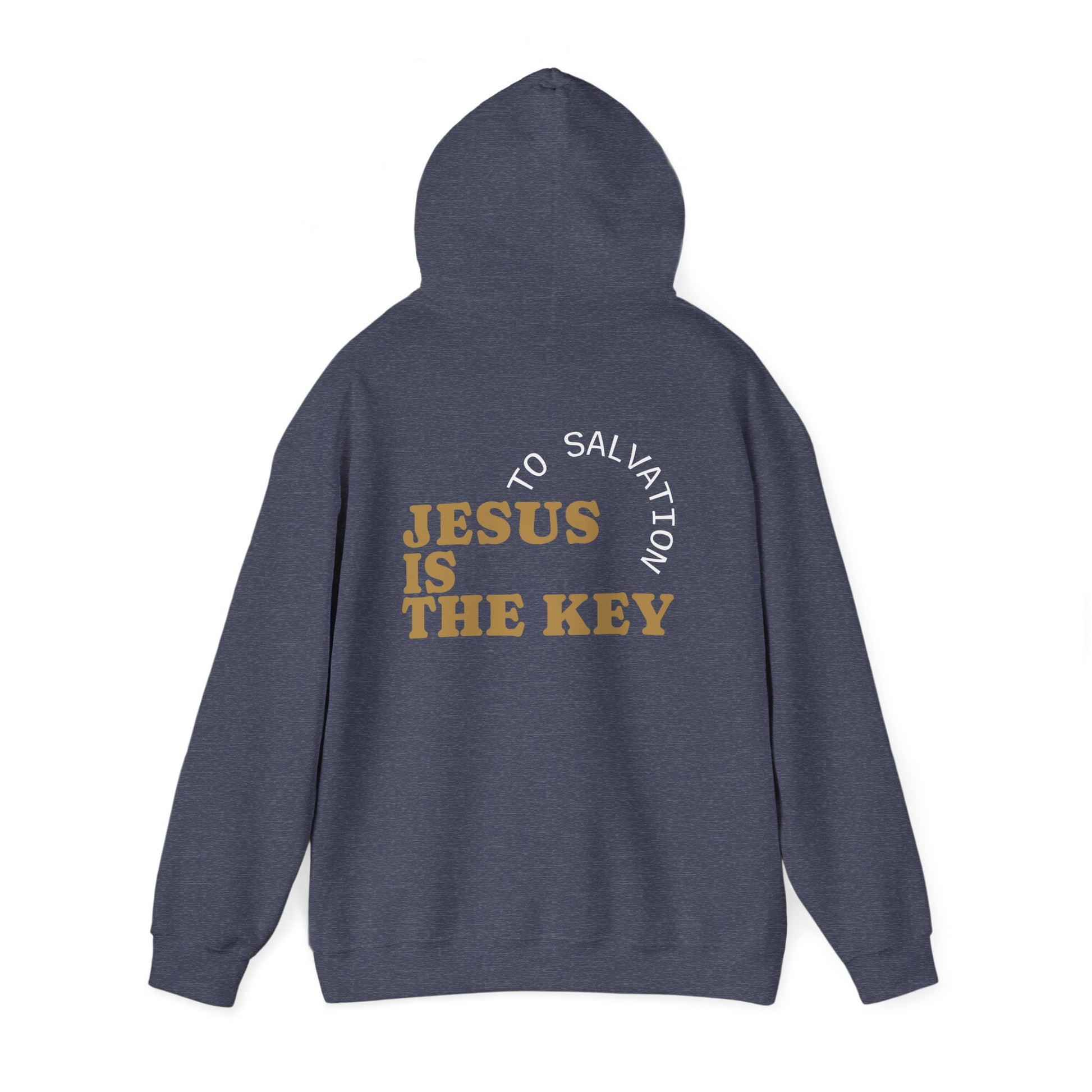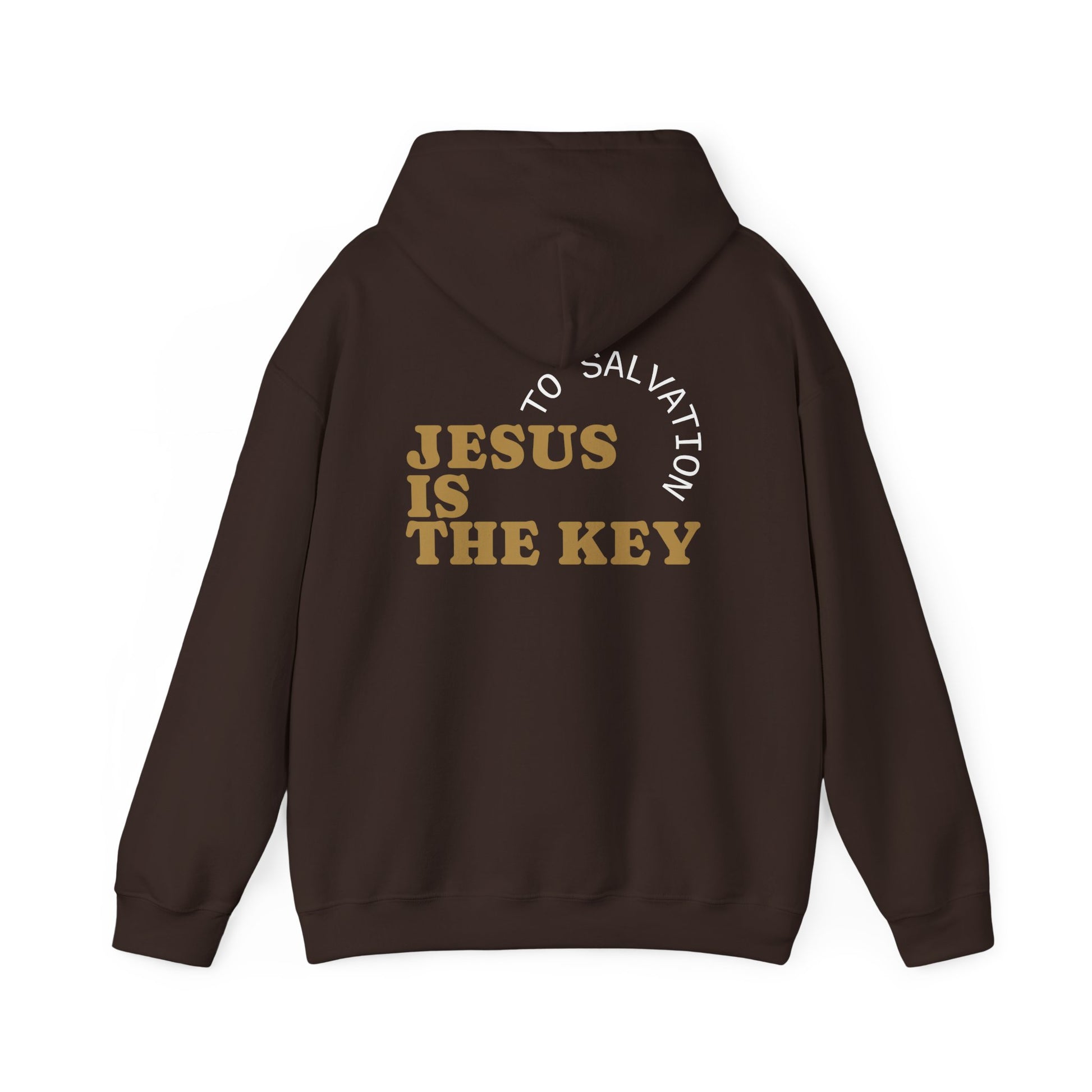 Soft, warm, and quietly bold — this midweight hooded sweatshirt carries a message more than a logo. Front text reads a hand-lettered “God’s Children,” small and centered, like a private reminder you carry through the day. On the back, block lettering states “JESUS IS THE KEY” framed by a subtle arc: it feels like a declaration spoken gently, not shouted. The sandy, neutral tone and clean typography make it easy to layer with denim or a coat. The roomy kangaroo pocket and double-lined hood cradle cold hands and windier mornings. Wear it to Bible study, volunteer days, or on slow coffee runs; it settles into everyday life and quietly opens conversation for those who notice.
